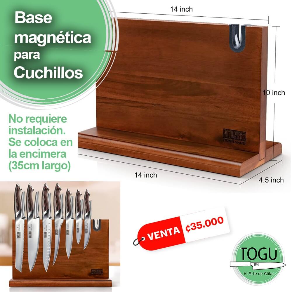 Optimiza el espacio y eleva el estilo de tu cocina con esta base magnética para cuchillos de madera de acacia, diseñada para ofrecer almacenamiento seguro, acceso rápido y una presentación elegante.