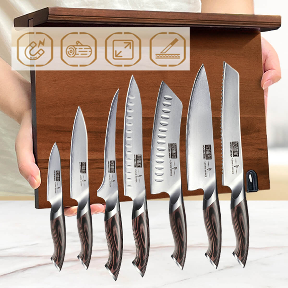 - Doble cara magnética de alta potencia: Imanes ocultos con fuerte capacidad de sujeción para almacenar cuchillos de forma segura.