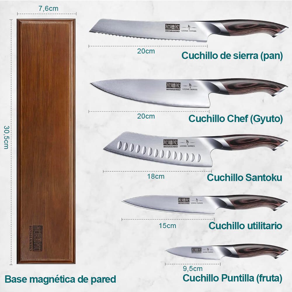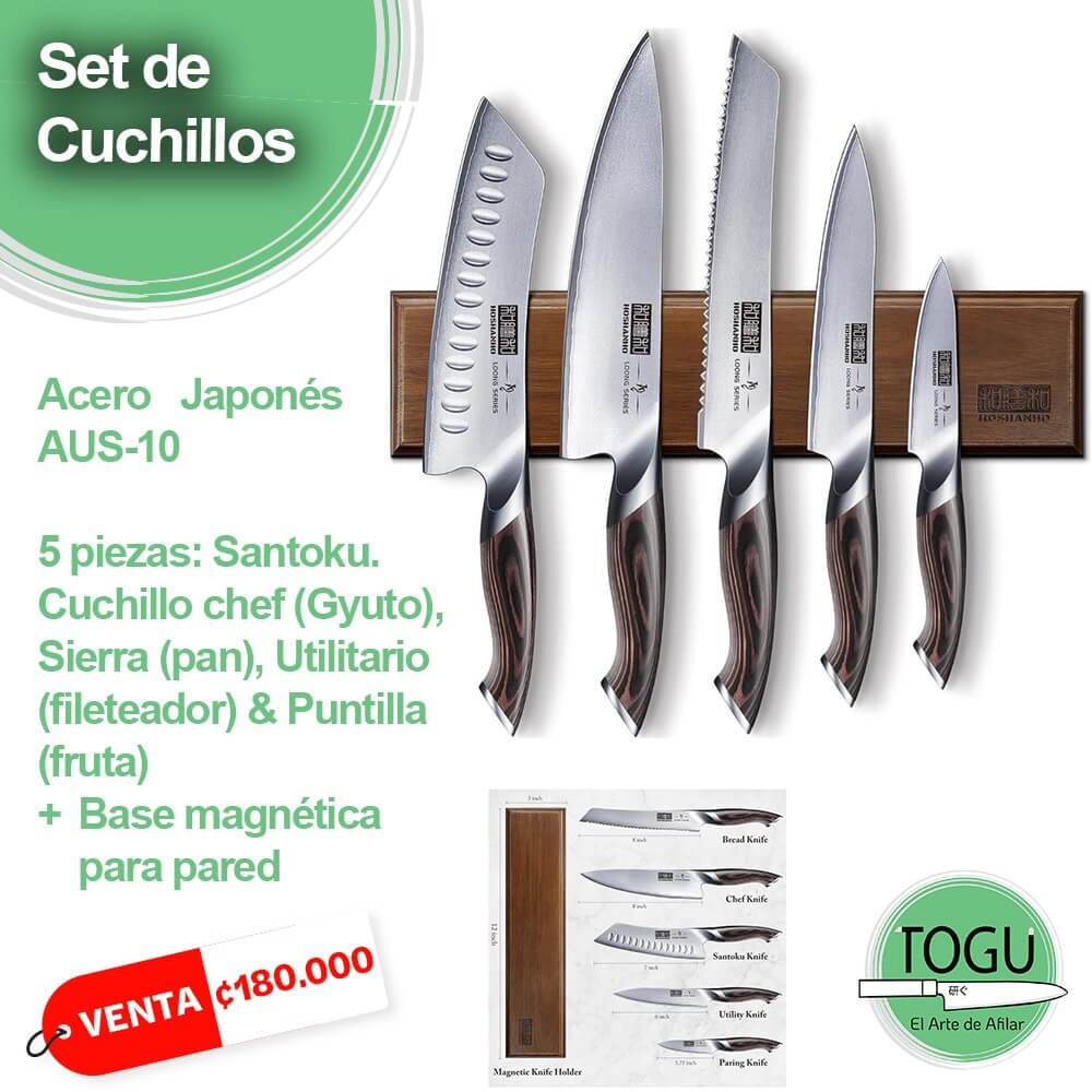 - Santoku, Chef (Gyuto), Pan, Utilitario y Puntilla